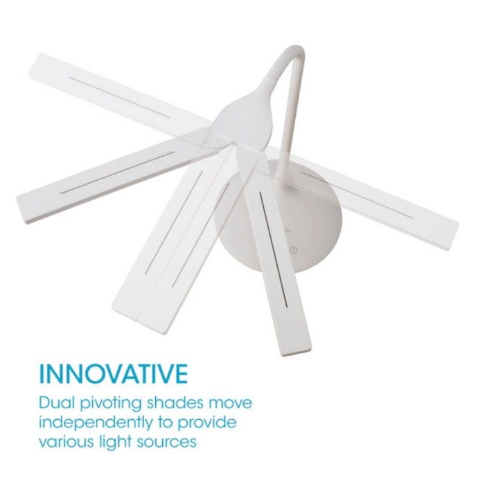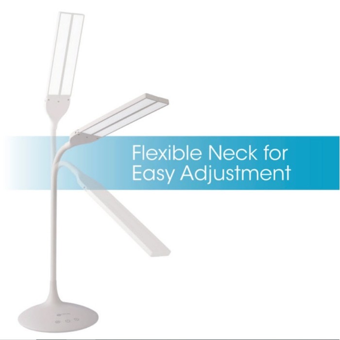 Avec une conception à double tête qui pivote à 180 degrés (ou n'importe quoi entre les deux), la lampe de table à DEL OttLite® Pivot est lampe de lecture parfaite. La formulation exclusive ClearSun® LED d'OttLite est aussi proche du soleil que possible, ce qui signifie une réduction de l'éblouissement et de la fatigue oculaire et un confort et une concentration accrus. Les niveaux de luminosité réglables et les 3 modes de couleur permettent un éclairage parfaitement personnalisé. Il y a aussi une minuterie d'arrêt de 40 minutes.