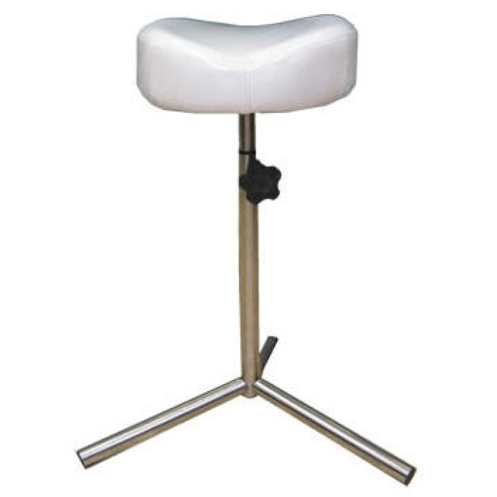 Un repose-pieds blanc, réglable en hauteur pour le traitement de pédicure.