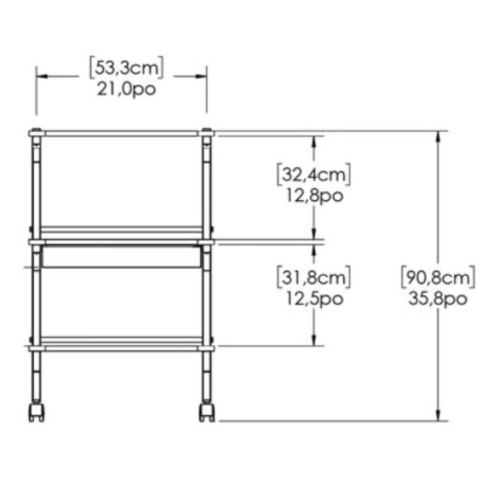 Table de service à 3 tablettes avec tiroir Spécifications Ass..
