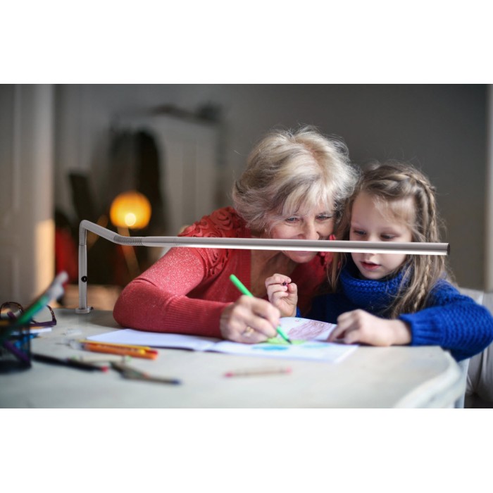 La troisième génération de la lampe Daylight Slimline est idéale pour visualiser clairement et en détail des travaux complexes. L'abat-jour en aluminium émet une lumière plus vive avec une meilleure diffusion. Un variateur à quatre niveaux permet de contrôler la luminosité. La pince fine est discrète et est en acier brossé pour une finition élégante.