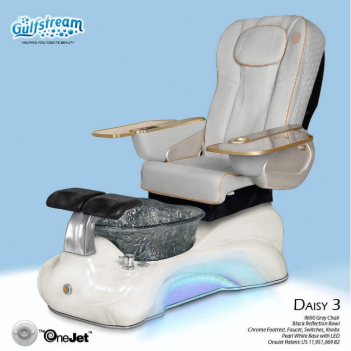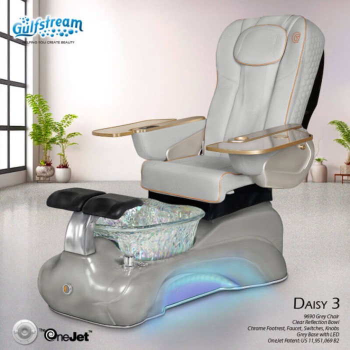 Détendez-vous avec style grâce à notre spa de pédicure Daisy 3 ultra-mince, doté d'une base élégante qui berce votre corps et brille d'une lueur LED apaisante. Mélange parfait de luxe et d'innovation, cette chaise de pointe 9690 est ornée d'une élégante bordure dorée, vous invitant à vous adonner à une expérience véritablement rajeunissante.