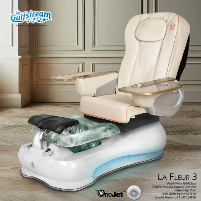 Les chaises de pédicure spa La Fleur 3 sont livrées avec les nouvelles chaises de massage spa 9690. Offrez-vous une expérience de relaxation ultime avec notre chaise de massage SPA 9690 de pointe avec bordure dorée. Disponible en cuir PU de qualité supérieure, cette chaise présente des fonctionnalités innovantes telles que :