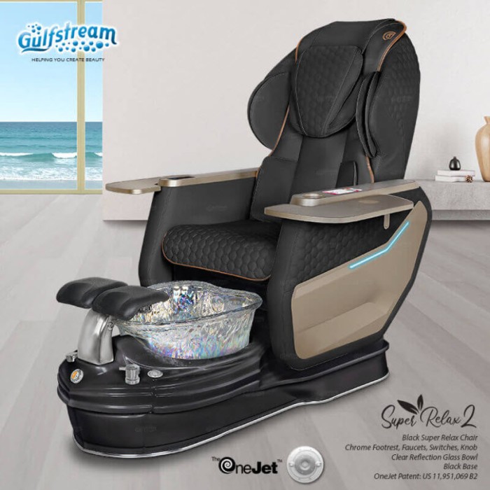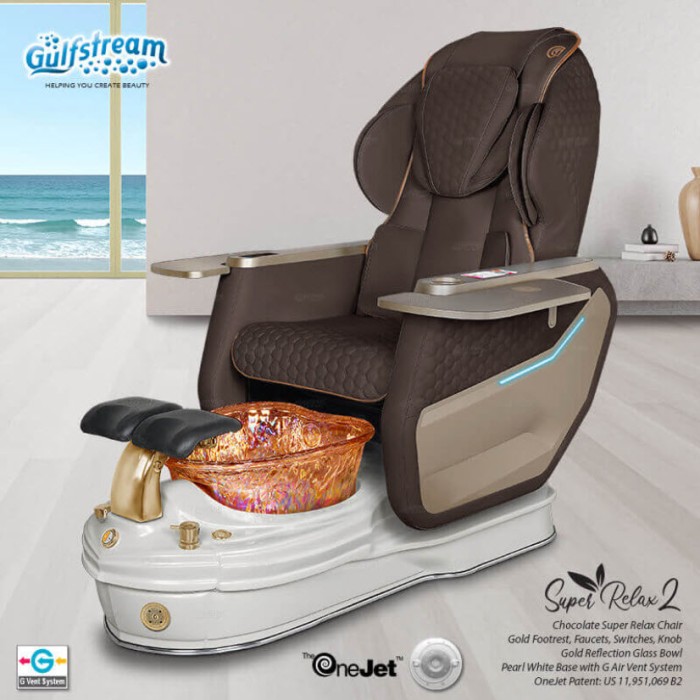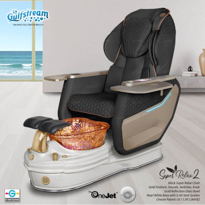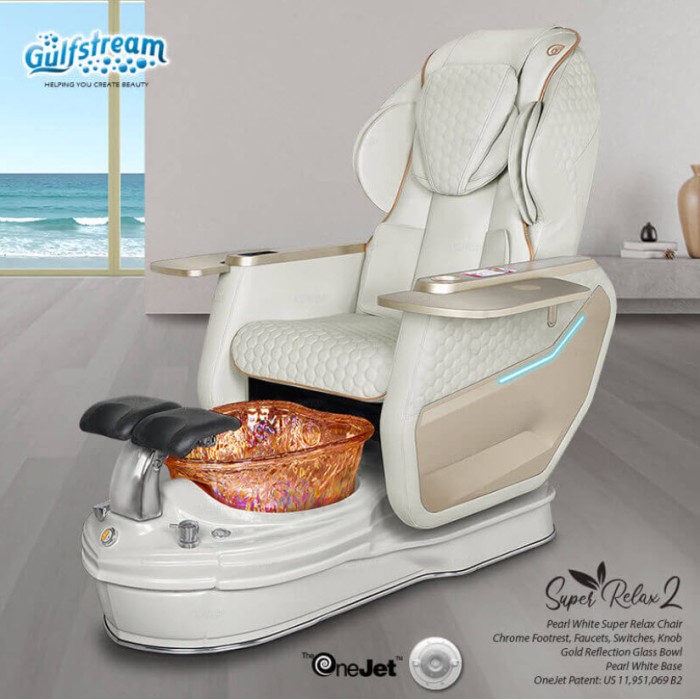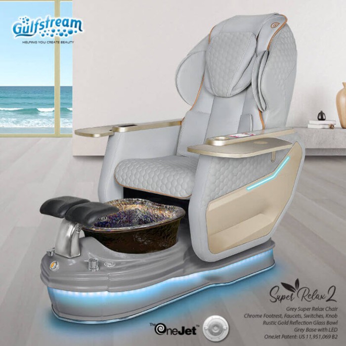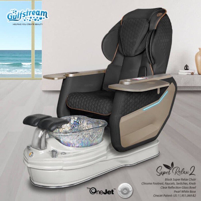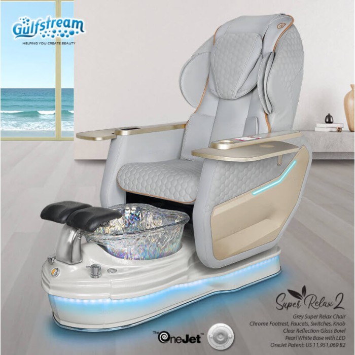 Vivez le summum du luxe avec le spa Super Relax 2 de Gulfstream, alliant la technologie Onejet de pointe à une expérience relaxante. Une base aux formes élégantes, un bol en verre étincelant et ce fantastique fauteuil de massage corporel haut de gamme vous offrent un bain de luxe et une tranquillité d'esprit optimale. Une expérience merveilleuse pour le client comme pour le praticien.