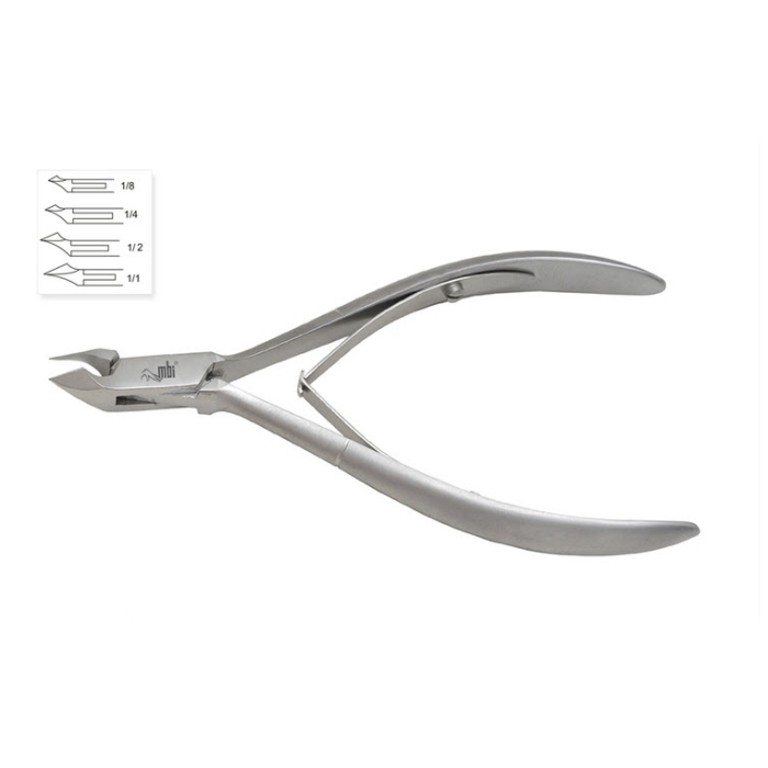 La pince à cuticules MBI-102-D , avec double ressort à la poignée, de taille moyenne pour le confort.