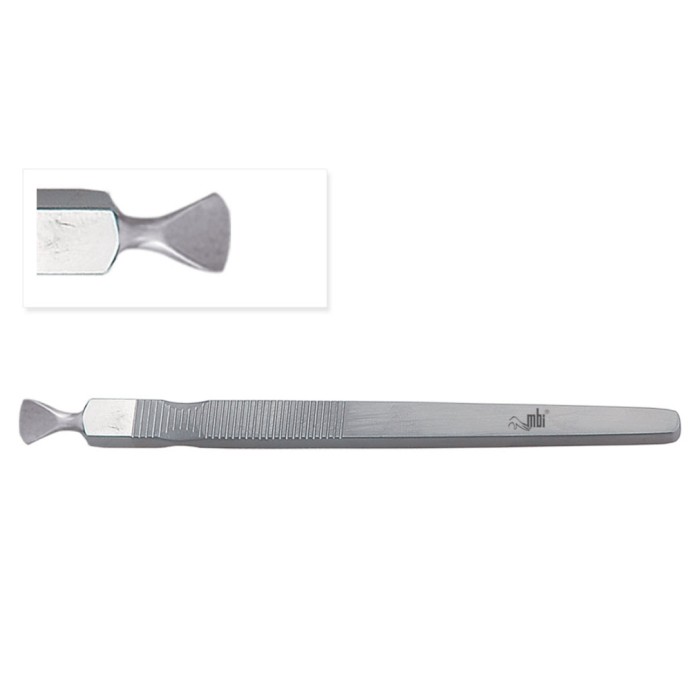 Il est conçu avec une cuillère plate sur un seul côté, ce qui est idéal pour repousser les cuticules en vrac tout en soulevant la peau morte. Le fini satiné et les rainures sur la poignée permettent une meilleure adhérence pendant l'utilisation de l'outil.