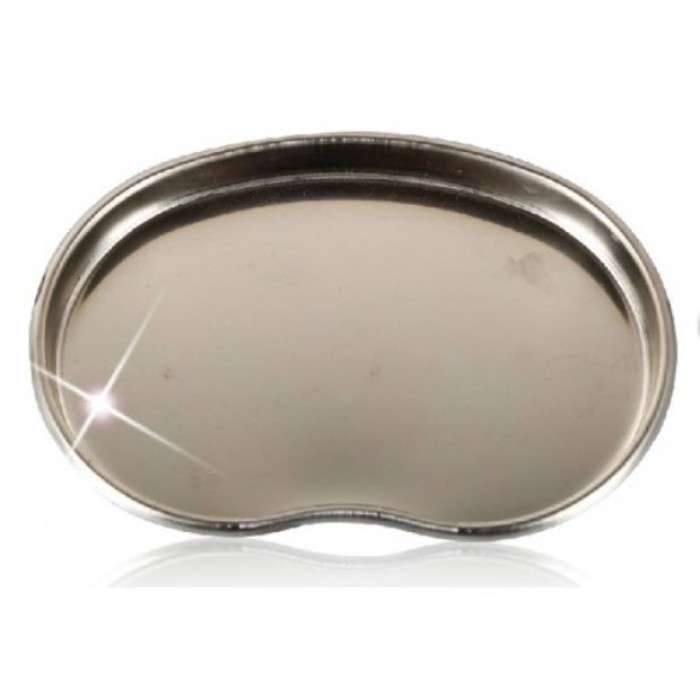 Ce plateau de stérilisation en acier inoxydable et de forme de rein est idéal pour transporter les outils et le matériel de stérilisation.