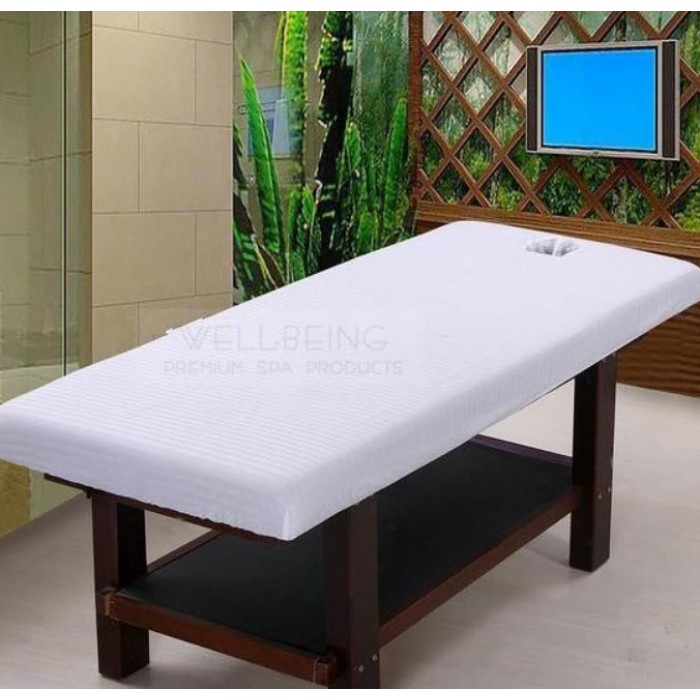 Ce drap de coton doux avec ouverture pour le visage s'adapte à la plupart des lits de massage ou de station thermale.