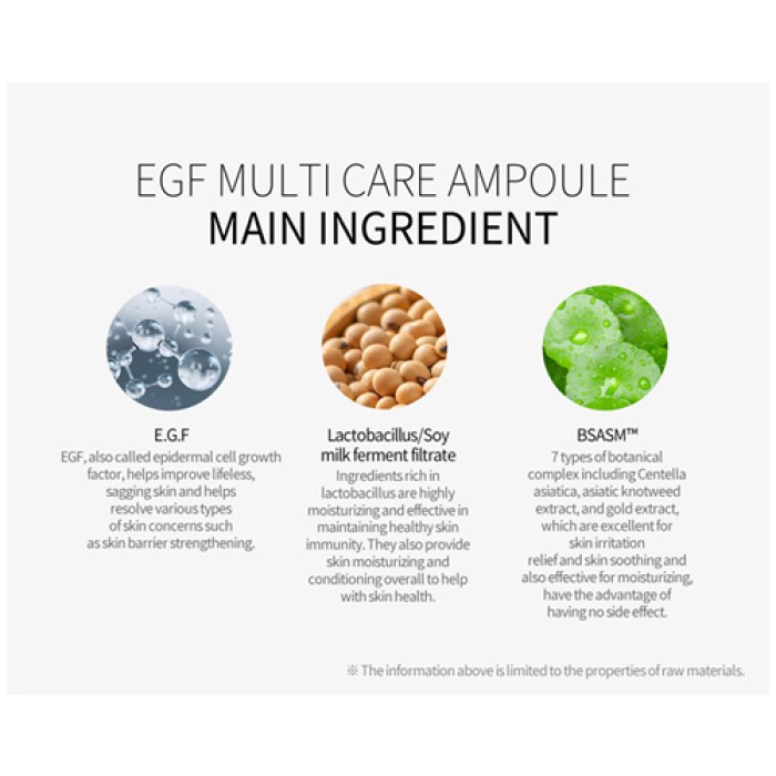 Ampoules multi soins infusées de facteur de croissance épidermique qui procure une élasticité et qui remplit la peau de l'intérieur vers l'extérieur. EGF Ampoule Serum contient des ingrédients qui nourrissent en douceur et dynamisent la peau en l'aidant à devenir ferme et saine avec élasticité.