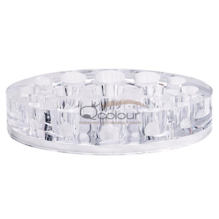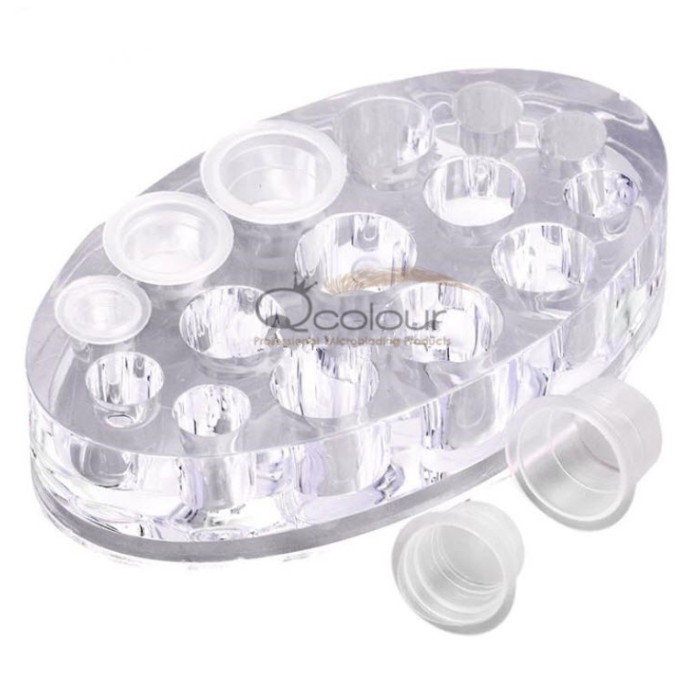 Ce porte-pigment fait d'acrylique est conçu pour contenir le récipient de pigments pour le tatouage, le maquillage permanent ou le microblading. Il a 15 trous pour différentes tailles de récipient à crème pigmentaire.