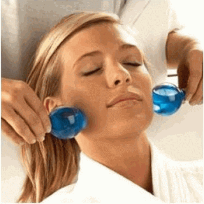 Utilisez les boules de glace pour le visage en appliquant un mouvement de roulement sur le visage, le dos, le cou, les mains ou les pieds.